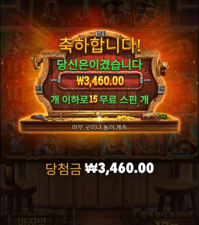 슬롯 플레이 장면 중 핵심 당첨 구간을 보여주는 이미지로, 당첨금 ₩3,460.00 정보가 같이 보입니다. 갓스핀에서 망해 라이징으로 왔다..